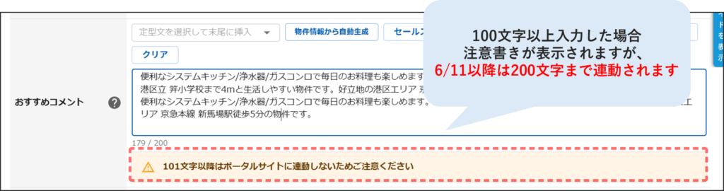 6/11以降は下記注意書きに関わらず、200文字まで連動されます。