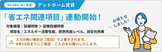 【2025年9月24日】アットホーム賃貸(居住用) 省エネ性能項目の連動開始のお知らせ