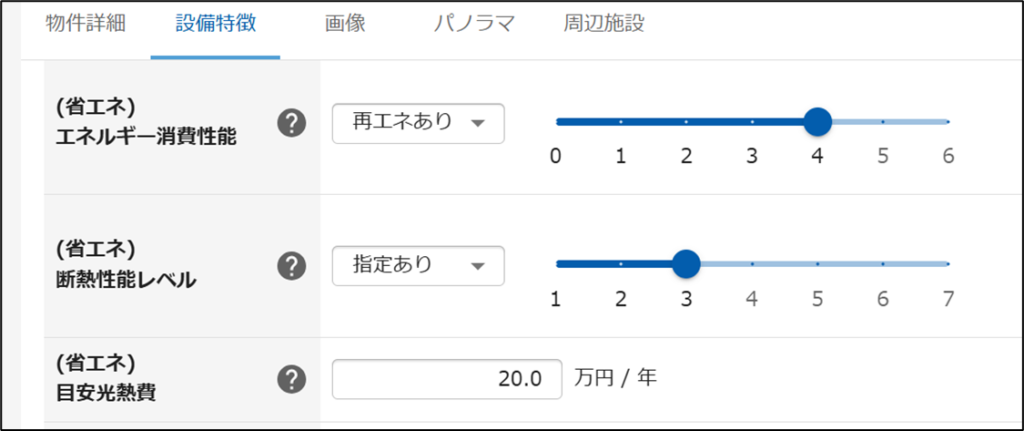 (※)…「エネルギー消費性能」は「不明」の場合もレベルを選択できますが、アットホームには連動しません。