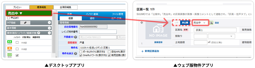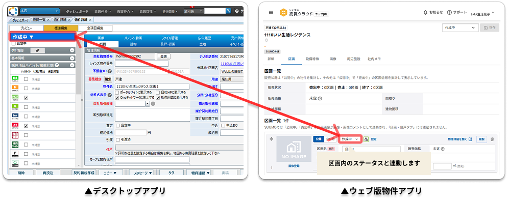 3.いい生活デスクトップアプリとウェブ版物件アプリ間で、物件ステータスが相互で連動するようになります