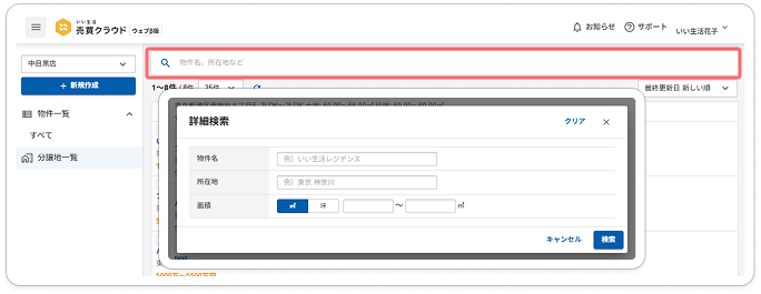 ※「面積」での検索は、物件種別によって対象となる項目が異なります。