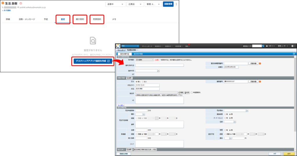 デスクトップアプリで登録された査定、媒介契約、売買契約情報の
