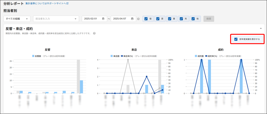 担当者別の分析レポートにおいて、今までは前年度実績のグラフが常に表示されていましたが