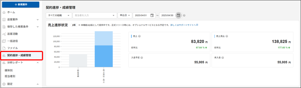 2025/03/26リリースで追加した「契約進捗状況」に続き、営業成績の管理機能として、