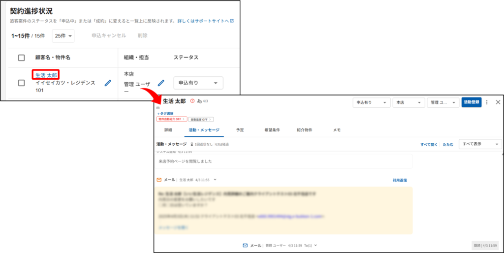 Before:「物件名」をクリックすると追客案件が開くAfter:「顧客名」をクリックすると追客案件が開く