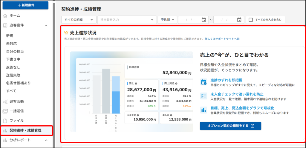 本機能は、「いい生活賃貸クラウド 営業支援 成績管理オプション」をご契約のお客様にご利用いただけます。