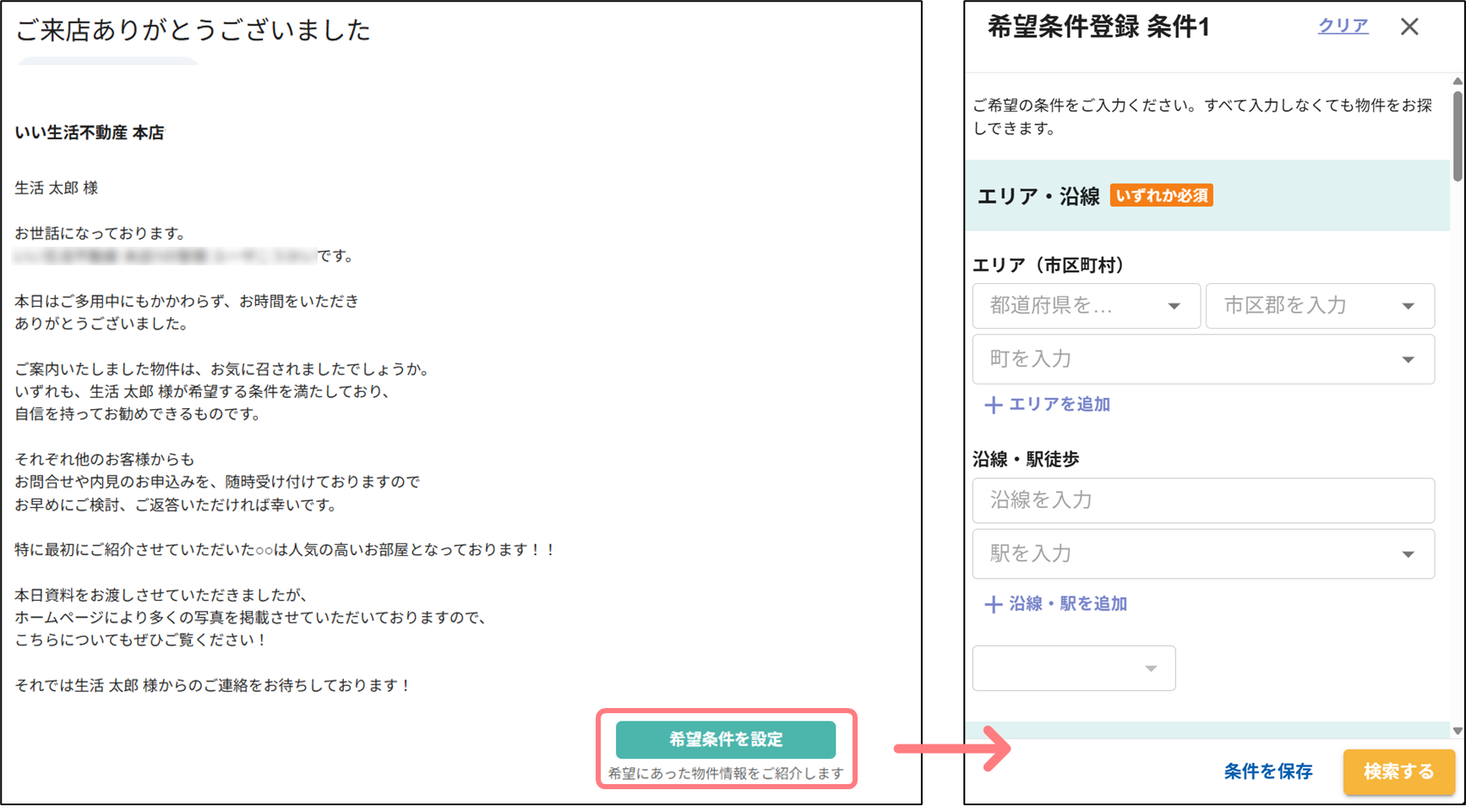 エンドユーザーが希望条件設定ボタンを押した際の動きを改善します