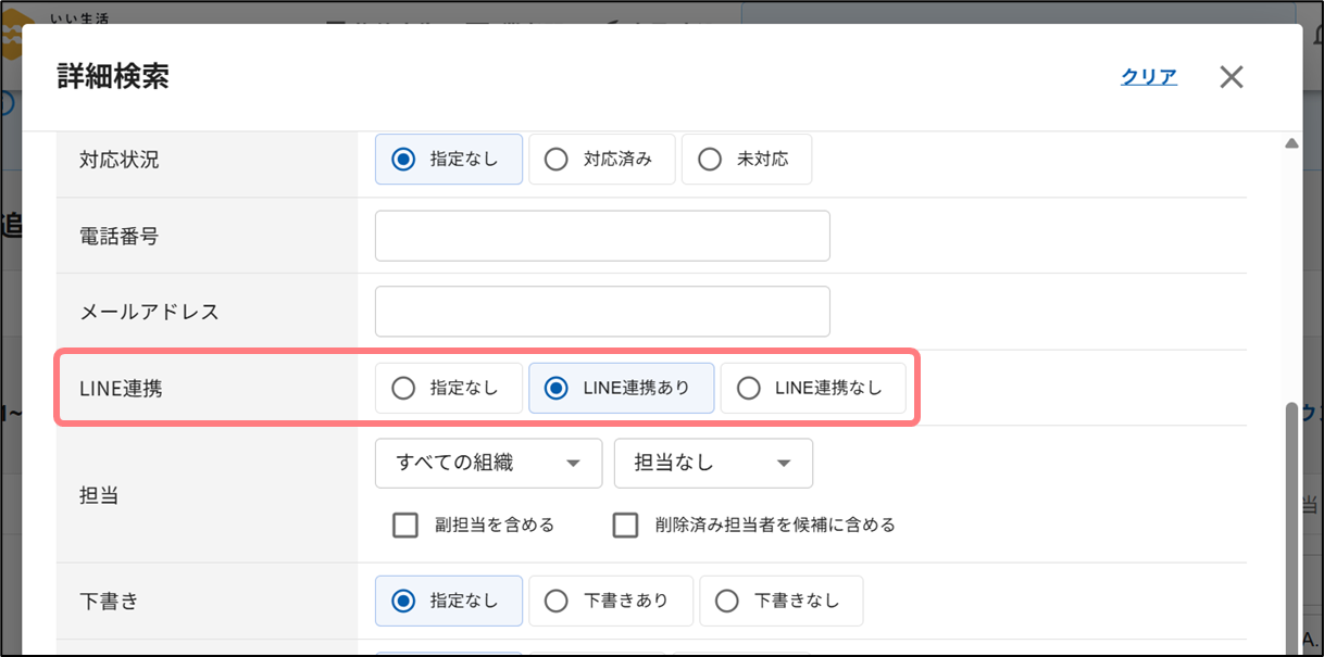 3.追客案件をLINE連携有無で検索できるようになります