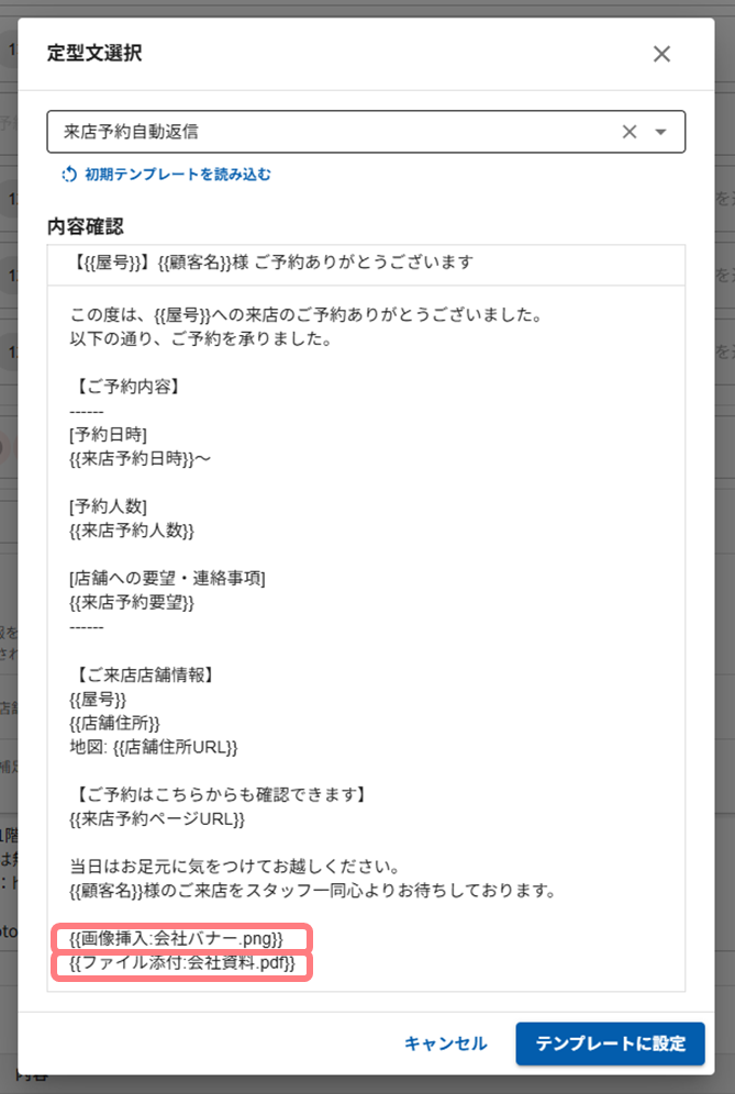「来店予約自動返信」と「シナリオ自動追客」の定型文において、